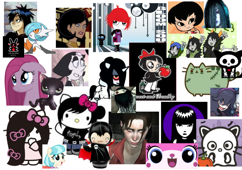alternative metal, halloween, horror movies, striped patterns, fizzy drinks, cartoon villains, music on physical formats, foraging through ebay, smudgy eyeliner, luxury chocolate, black cats and bunnies, webkinz and littlest pet shops, fancy coffee, clowns, black nail polish, general dark/gloomy imagery and the late 2000s/early 2010s. i am very passionate about art and fashion in general!